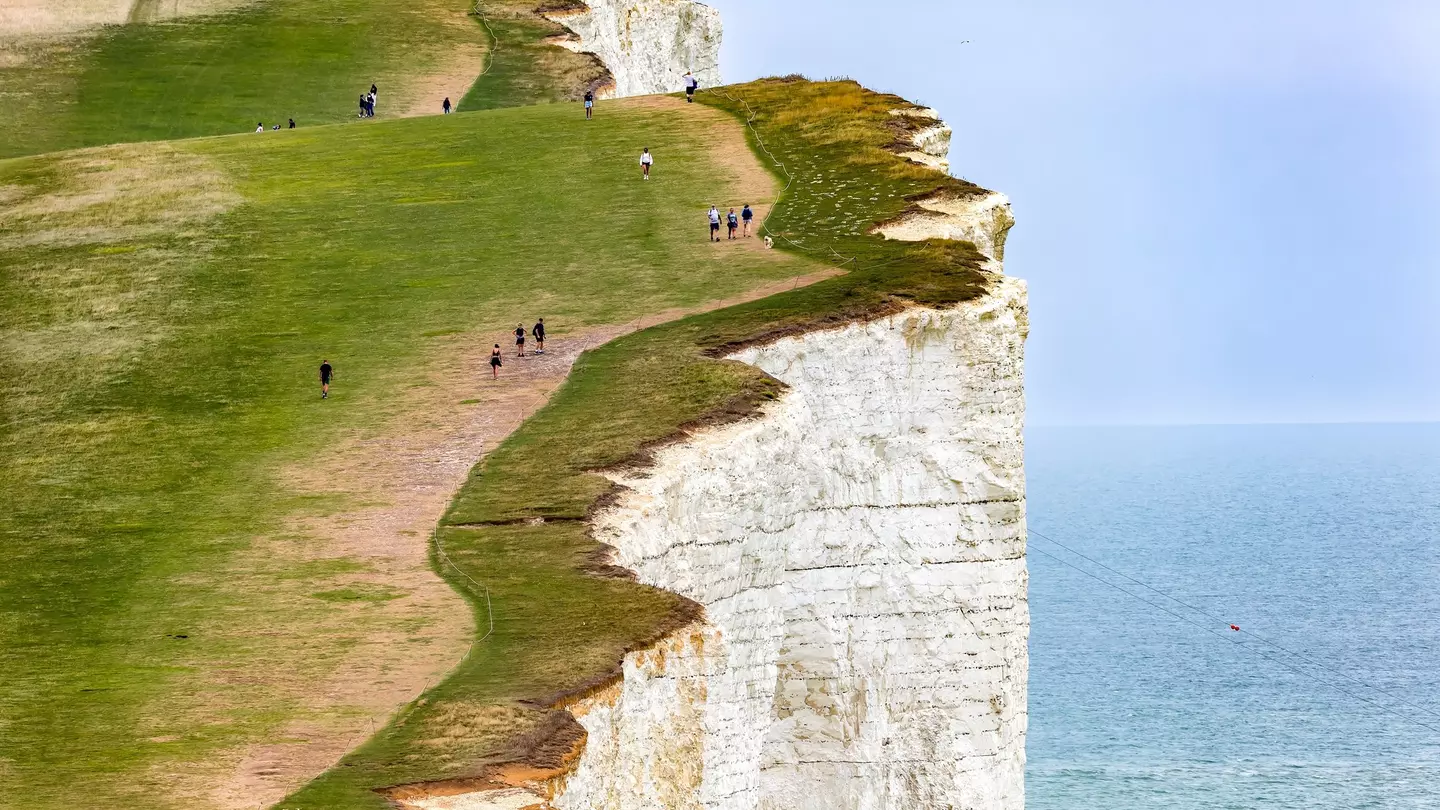 Walkers follow the towering chalk cliffs at Beachy Head in the South Downs. Richard Whitcombe/Shutterstock