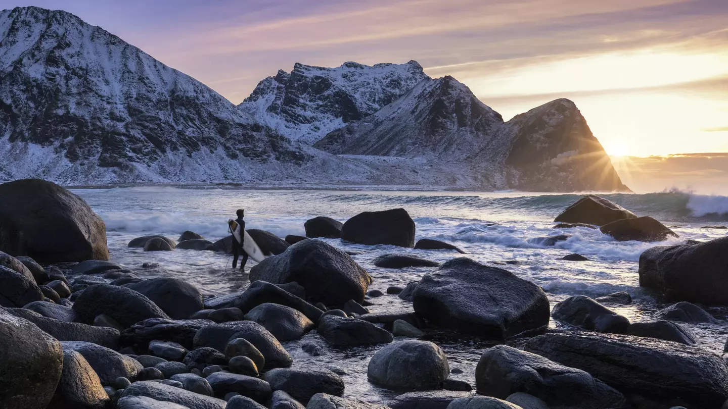 Some surfers seek out bigger swells to test themselves. Surf photographer Chris Burkard preferred to journey beyond the Arctic Circle to the north of Norway .