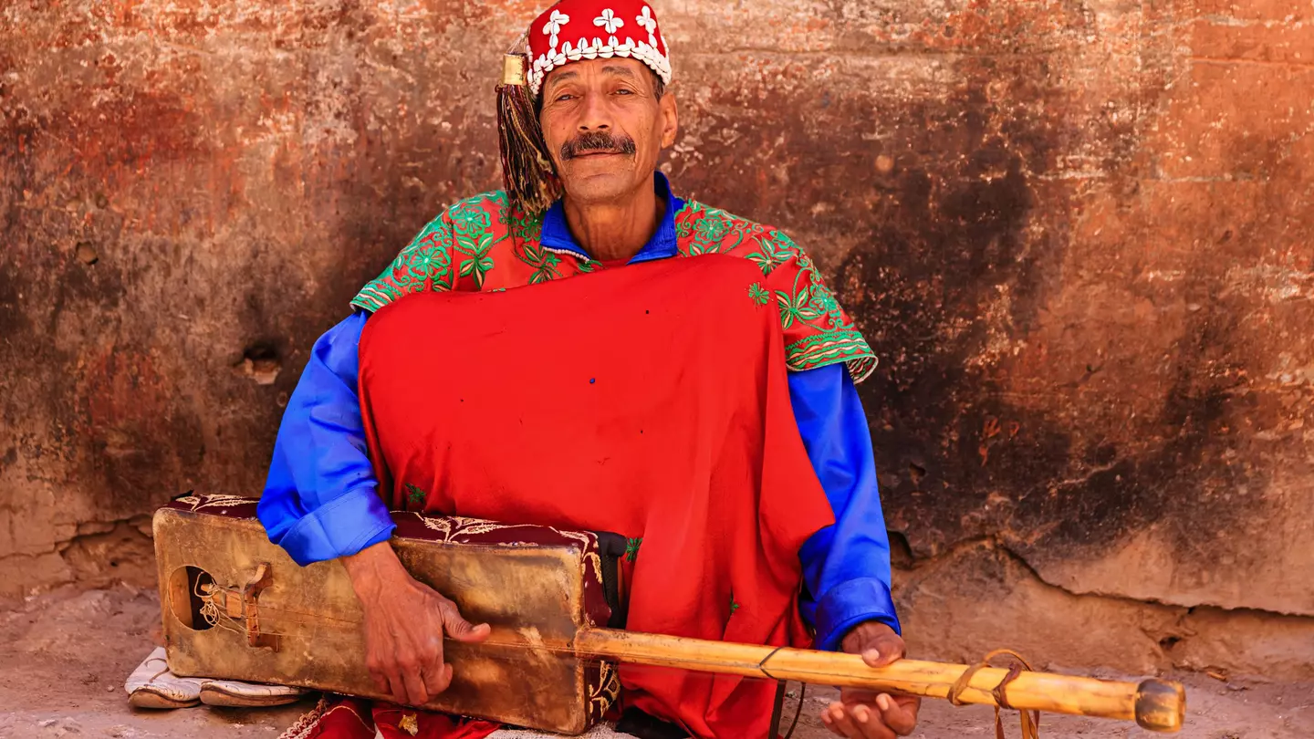 Moroccan street musician on Djemaa el Fna square. Bartosz Hadyniak/Getty Images