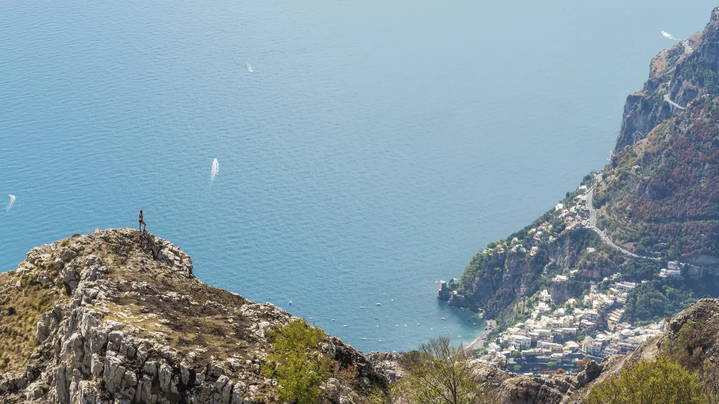 A hiker enjoying spectacular views over the Amalfi Coast. Andrea Comi / Getty Images