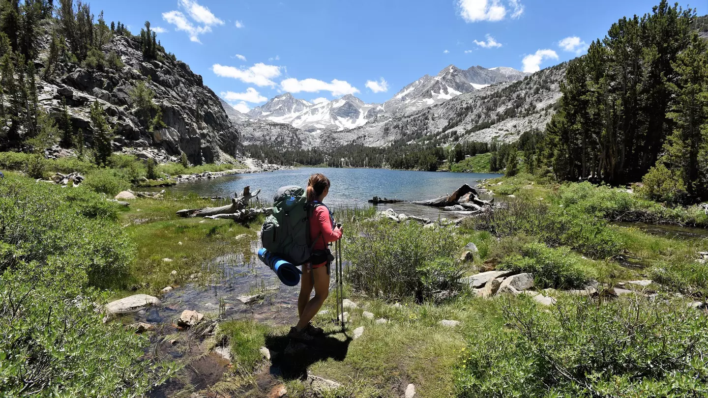 A backpacker in Little Lakes Valley, John Muir Wilderness in California. Jimmy W/Shutterstock