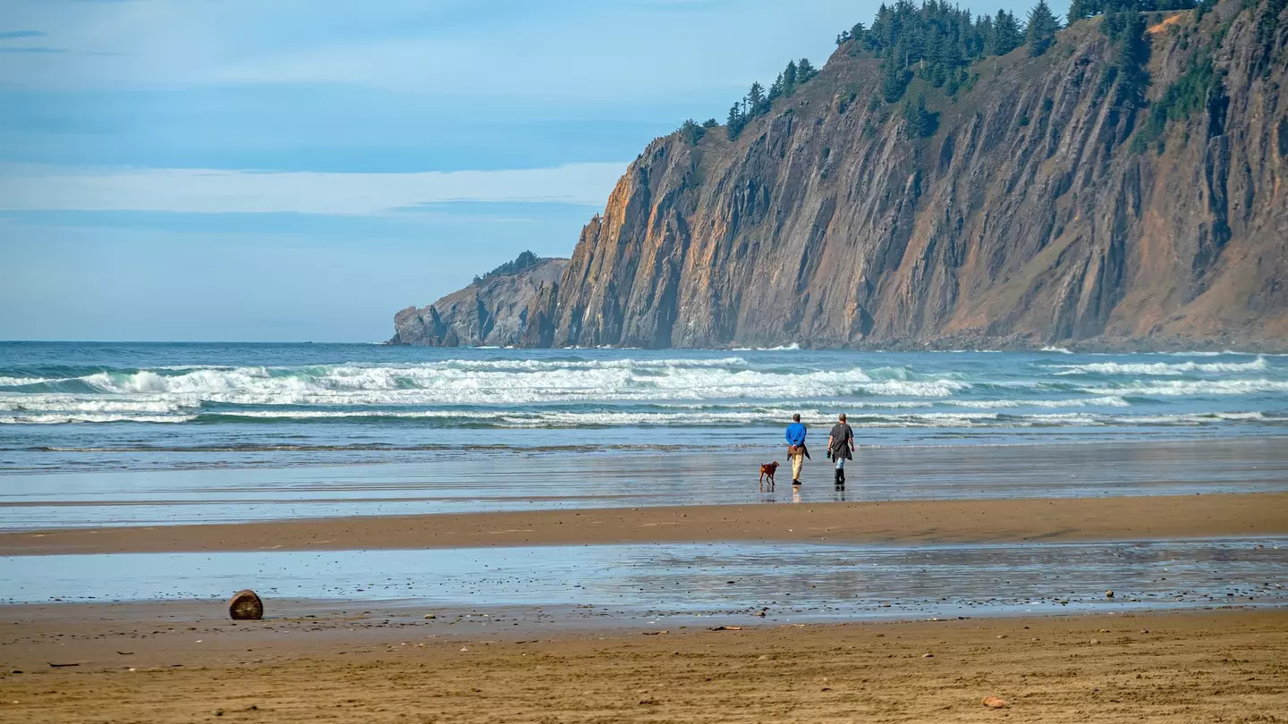Dog walkers on Manzanita beach, Oregon. Rigucci/Shutterstock