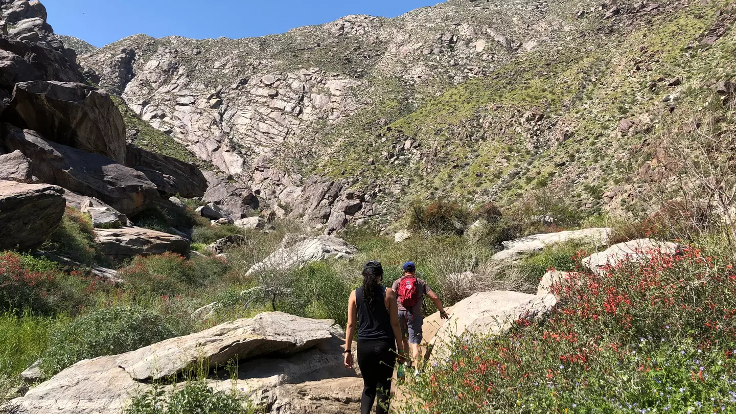 People hiking through Tahquitz Canyon on a sunny day in Greater Palm Springs. WKanadpon/Shutterstock